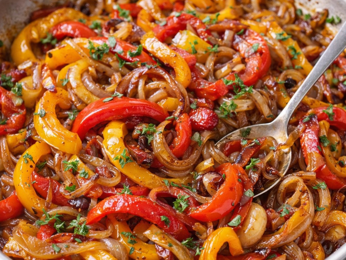 🌶️ Salade de poivrons et oignons : salade tiède ou froide aux poivrons grillés et oignons caramélisés — idéale en accompagnement, tapas ou barbecue. Calculez les calories avec notre outil. Des poivrons fondants, légèrement caramélisés avec une touche sucrée-acidulée irrésistible 😍 Une recette simple et pleine de caractère, parfaite en accompagnement ou pour relever viandes, poissons ou sandwichs. 💡 Astuces pour les réussir 1. Coupe des lamelles régulières Des morceaux de taille uniforme permettent une cuisson homogène et une belle texture fondante. 2. Fais d’abord bien revenir les poivrons Laisse-les cuire jusqu’à ce qu’ils soient bien tendres avant d’ajouter le sucre et le vinaigre pour une meilleure caramélisation.